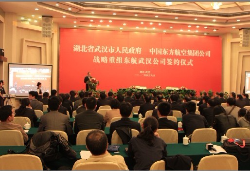 4月8日晚,武汉市政府与中国东方航空集团在东湖宾馆签署战略重组协议,省委书记李鸿忠,省长王国生,省委常委、常务副省长王晓东,省委常委、市委书记阮成发,省委常委、省委秘书长李春明,东航集团公司总经理、东航股份公司董事长刘绍勇等出席签约仪式。集团公司董事长赵家新参加。
