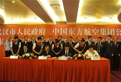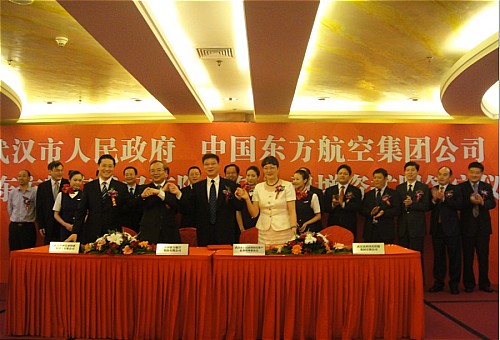 9月28日下午,武汉市人民政府、东航武汉公司、武汉市经济发展投资有限公司、武汉高科国有控股集团有限公司四方成功签署东方航空武汉有限公司增资扩股协议。这标志东航武汉公司战略重组成功,也是落实湖北省民航优先发展战略的重大举措,将有利于武汉中部崛起战略,进一步加速湖北武汉经济建设发展。