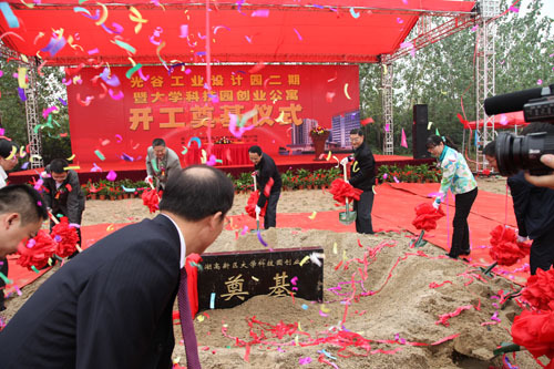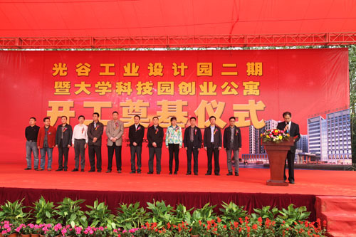 10月26日上午,光谷工业设计二期暨大学科技园创业公寓项目开工奠基仪式在东湖高新区汤逊湖北路施工现场举行。武汉高科集团公司党委副书记、副总经理张志勇主持仪式,党委书记、董事长赵家新致辞,武汉市房管局副局长耿宏诚宣布项目开工。同时,仪式上还举行了光谷工业设计园主体园区规划设计合同签约仪式。