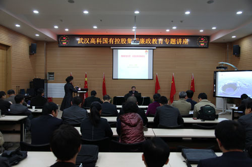11月15日,集团公司在高科医疗器械园举办廉政教育专题讲座,特邀请武昌区人民检察院副检察长张楠同志作了主题为“加强反腐倡廉建设,预防职务犯罪”的报告。张检察长详细分析了世界各国面临的职务犯罪严峻形势,结合大家耳熟能详的国内典型案例,对发生职务犯罪的原因进行了剖析,点明了职务犯罪的特点和趋势,对加强廉政建设、预防职务犯罪提出了对策和措施。集团公司本部全体员工、参控股公司领导、财务及建设人员参加了此次讲座。集团公司将针对此次讲座开展一次风险点自查工作,将反腐及职务犯罪防范的有关要求落到实处。