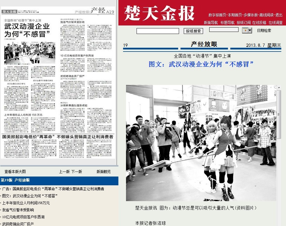 近段时间,全国各地动漫节相继举行。上海ChinaJoy刚刚闭幕,香港动漫节紧跟着拉开帷幕,沈阳动漫节、成都动漫节也相继布台开展。紧随其后的青岛国际动漫节,南京“软博会”也将于9月和10月举行。各地动漫节持续火热,但是,整体综合实力已经跻身全国第一方阵的武汉动漫企业,却对种类繁多的动漫节并不买账,企业要么有选择性地组团参加,要么根本不参加。