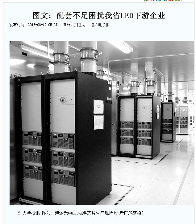 昨日,记者走进武汉迪源光电科技有限公司,这是一家专门生产LED芯片的上游企业,其生产的LED大功率照明芯片全国领先。据其负责人介绍,公司近年来一直是全天24小时订单式生产,“芯片一直是供不应求”。