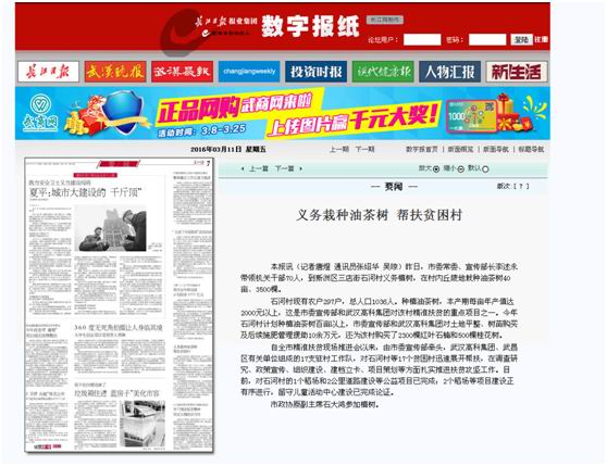 石河村现有农户297户,总人口1036人。种植油茶树,丰产期每亩年产值达2000元以上,这是市委宣传部和武汉高科集团对该村精准扶贫的重点项目之一。今年石河村计划种植油茶树百亩以上,市委宣传部和武汉高科集团对土地平整、树苗购买及后续施肥管理援助10余万元,还为该村购买了2300棵红叶石楠和500棵桂花树。