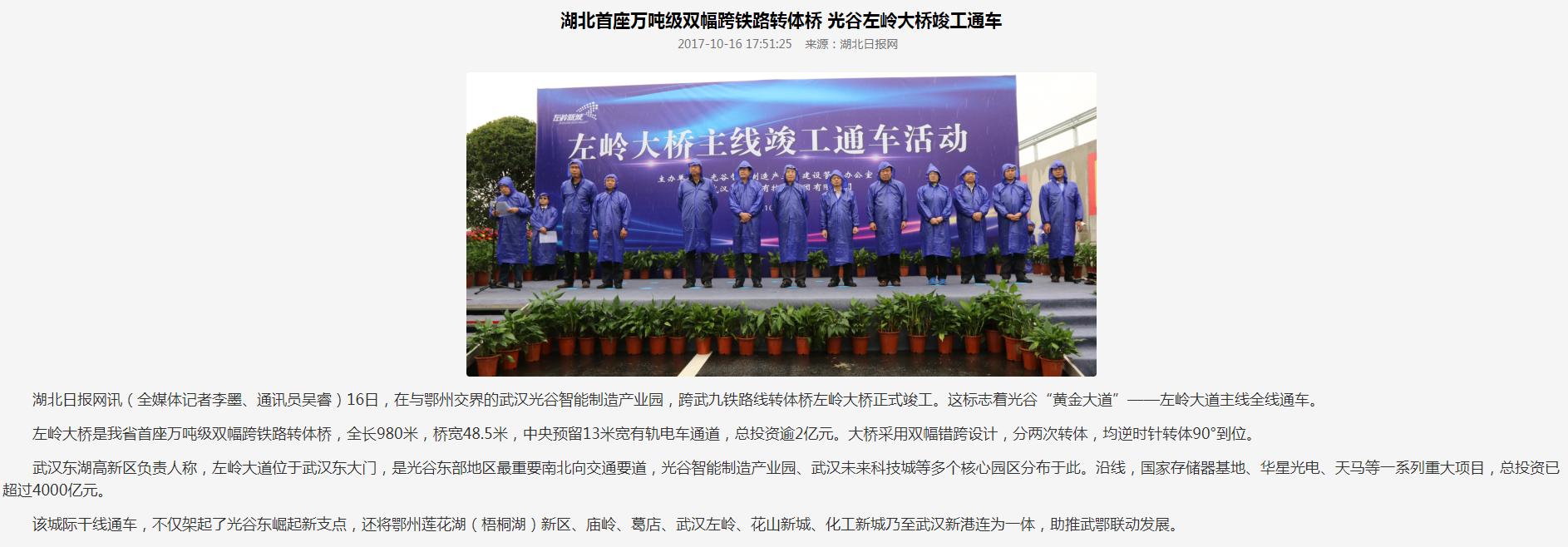 湖北日报网讯(全媒体记者李墨、通讯员吴睿)16日,在与鄂州交界的武汉光谷智能制造产业园,跨武九铁路线转体桥左岭大桥正式竣工。这标志着光谷“黄金大道”——左岭大道主线全线通车。
