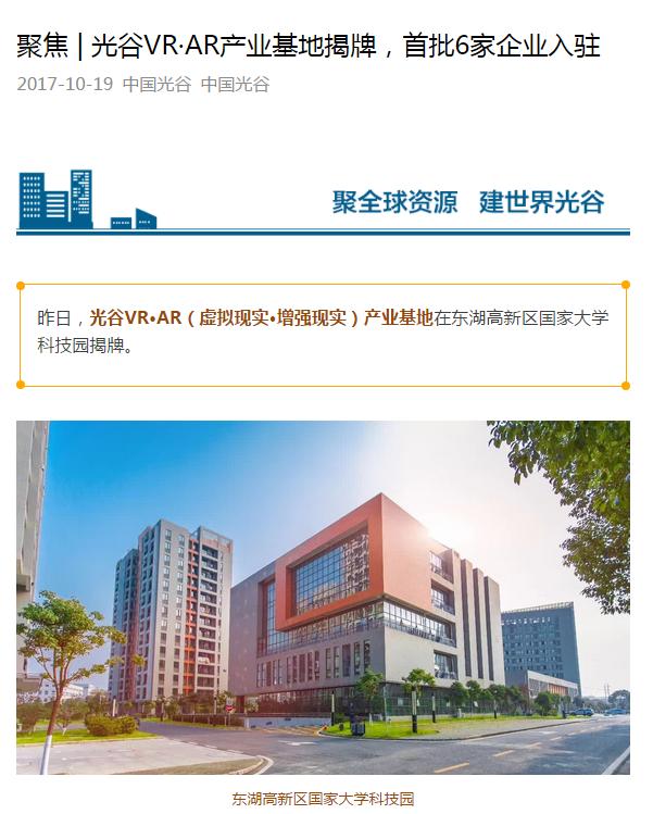 该基地由东湖高新区国家大学科技园与光谷VR·AR产业联盟共建,首批有天之逸、知人科技、天宇至强、灵图互动、幻亦互动、亿诺凌科等6家企业签约入驻。
